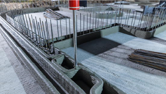 Complementa la impresión con soluciones prefabricadas y automatización robótica en la obra, para facilitar la integración de instalaciones y acabados.